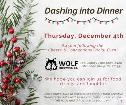 Please reserve your spot for an extended networking opportunity after our Holiday Cheers & Connections event. We will be meeting for dinner at Wolf Brewing Company.